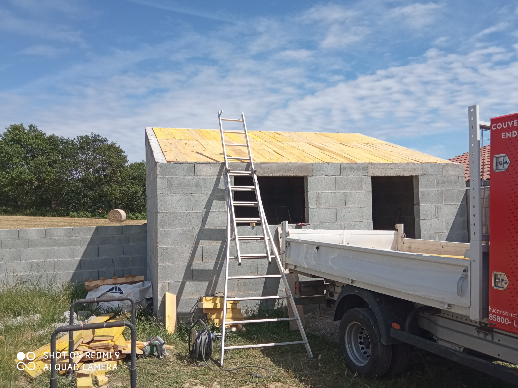 Création d'une couverture pour un abri de jardin chez un client sur la commune de Landevieille.